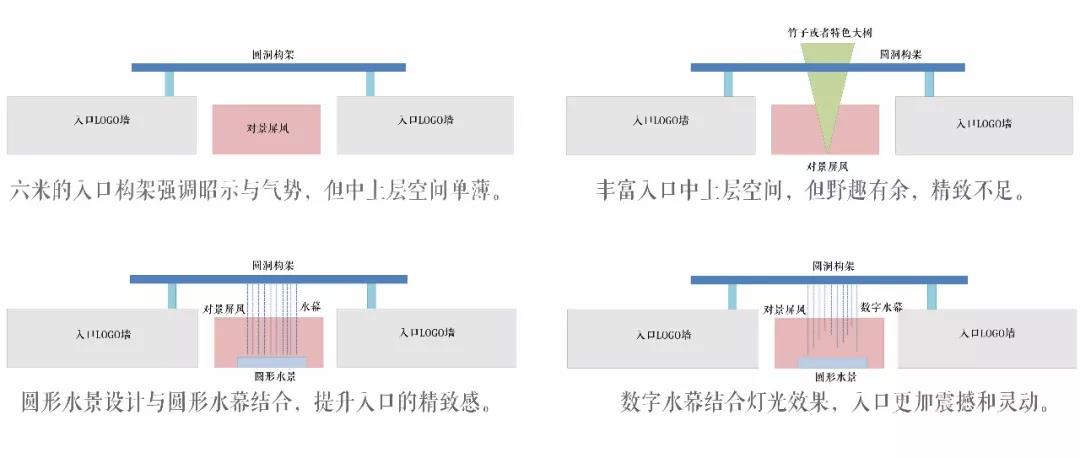 廊架顶部的圆形数字水幕是一次全新的尝试,变换的水幕效果使得入口空间更加震撼。